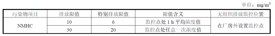表3.涂料、油墨及膠粘劑工業大氣污染物特別排放限值