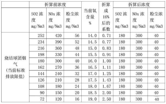 4)對于帶式焙燒機而言,濃度按氧含量16%折算并不科學,因為帶式焙燒機的排氣量包括了冷卻廢氣,而燒結機的廢氣并沒有包括環冷廢氣。帶式焙燒機應該按18.5%折算為科學。