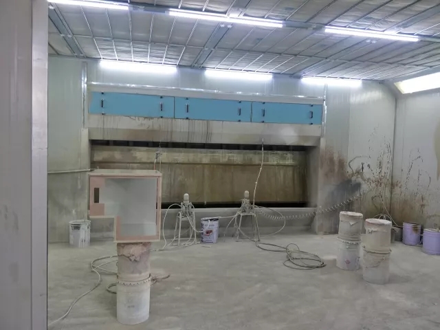 (標準的噴漆房,密閉空間且配有廢氣收集處理設施)