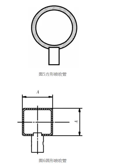 2007年,針對我們的非袋內(nèi)文氏管或保護管噴吹結(jié)構(gòu),我們又將傳統(tǒng)的圓形噴吹管(圖5)改進為方形管(圖6),這就簡化了噴嘴接口處理,提高了噴嘴定位精度和與噴管中心線垂直度公差的精度。圖6的噴嘴明顯比圖5噴嘴的定位公差和垂直度公差更易控制,因此更適合專業(yè)加工工具的應(yīng)用和提高產(chǎn)品加工效率。更重要的是,自此變更后再沒有出現(xiàn)噴嘴偏差造成的破袋案例。