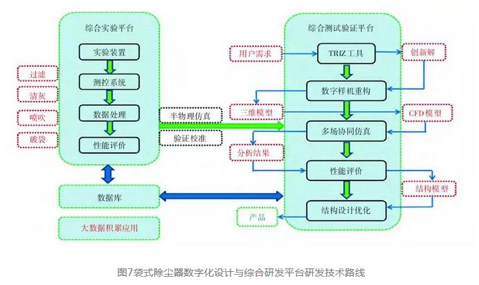 2008年初,我們開始了“袋式除塵器數(shù)字化設(shè)計與綜合研發(fā)平臺”的研發(fā)工作,歷時10年,針對袋除塵器產(chǎn)品創(chuàng)新研發(fā)的全過程,包括結(jié)構(gòu)、流場、過濾、清灰過程,以數(shù)字化設(shè)計技術(shù)為基礎(chǔ),創(chuàng)新研發(fā)手段,準確高效解決實際應(yīng)用問題,不斷提升袋除塵器產(chǎn)品綜合性能指標,構(gòu)建了袋式除塵器產(chǎn)品研發(fā)數(shù)據(jù)庫,分別開發(fā)了“袋式除塵器流場技術(shù)仿真分析優(yōu)化系統(tǒng)”、“袋式除塵器結(jié)構(gòu)優(yōu)化設(shè)計系統(tǒng)”,建成了“袋式除塵器綜合測試平臺”、“袋式除塵器綜合驗證平臺”和袋式除塵器性能綜合實驗基地(圖7、8)。