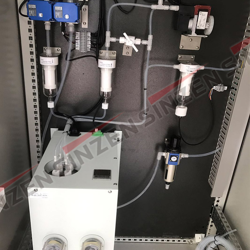 緊接著到了下面,把量程氣通到采樣球閥的上面那根管,最終顯示的數(shù)據(jù)也是差了好多。隨后跳過冷凝器,直接在第三過濾器的進口通氣,過了幾分鐘之后,分析儀數(shù)據(jù)和標氣瓶上的值相對穩(wěn)定。回過頭來再去找冷凝器的問題,先是把量程氣通到二進口。過了幾分鐘發(fā)現(xiàn)數(shù)據(jù)也能夠相匹配,然后我再往前找,在冷凝器的一進口通氣。過了幾分鐘之后數(shù)據(jù)差了許多,隨后判斷出問題不是冷腔的問題,那就是蠕動泵的問題,正好我隨身帶了一個蠕動泵。將他換好之后,再次往讓球閥的位置進行標氣。幾分鐘碳看分析儀上的數(shù)據(jù),完全可以和標氣瓶上的值相匹配,最后判斷為蠕動泵進行排水的過程中,沒有把水排出去,導致管路中堵塞。大部分的氣沒有到分析儀。蠕動泵換好之后,又把量程氣在各個地方通了一遍,均沒有問題。都能夠相 匹配。準,讓現(xiàn)場負責人聯(lián)系銷售購買80%的量程氣。